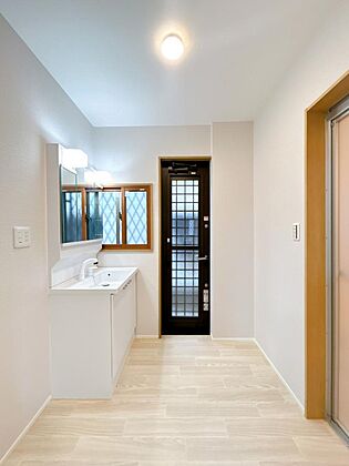 【リフォーム後 勝手口】勝手口はクリーニングを行いました。洗面所へと繋がっております。