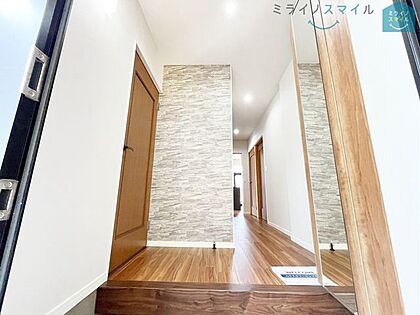 開放感のある広々スペースのお客様を招きやすい玄関です!玄関がいつも片づく大容量シューズボックス付きです♪