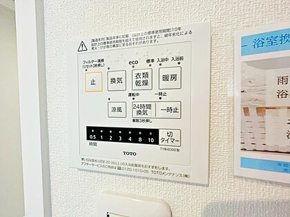 【浴室乾燥・暖房機】雨の日も室内干しできます。