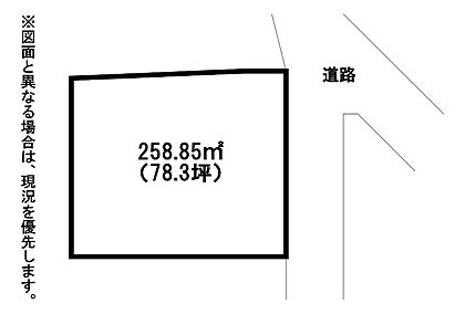 | 土地面積/坪(坪単価) | 258.85m2(登記簿)/78.44坪(7.60万円) | 接道 | − |