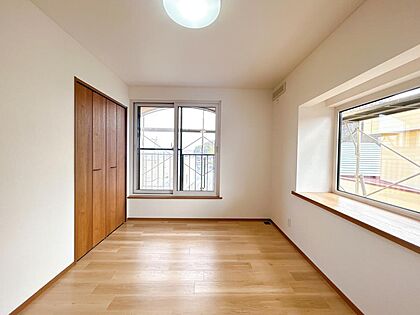 【リフォーム済_2階洋室約6帖】元々和室でしたが、洋室に変更致しました。フロアタイル張替、クロス張替、建具交換、照明交換等を行いました。