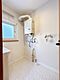 【リフォーム済_洗面室】クッションフロア張替、クロス張替、建具交換、照明交換、洗面化粧台・ボイラー・ユニットバスは新品交換致しました。