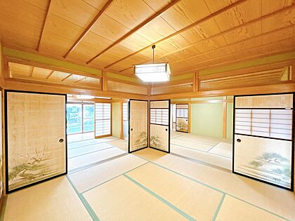 【リフォーム済】和室の様子です。3部屋ある和室が続き間となって、約26帖の広い和室にもなります。広々とした空間で大人数でも集まることができますね。クリーニングを行いました。
