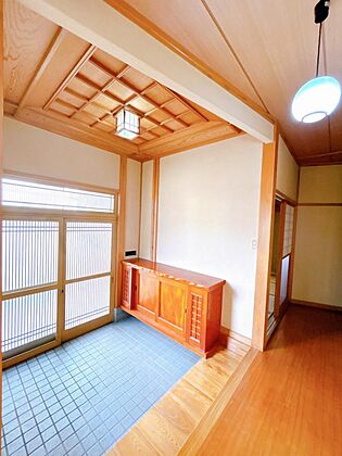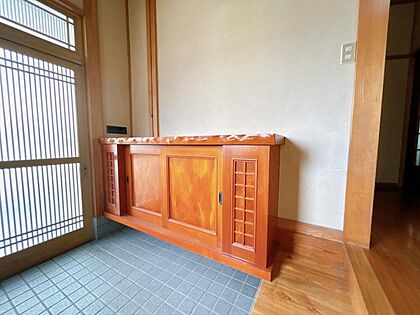 【リフォーム済】玄関(内観)の様子です。下足箱がついておりますので、靴の収納には困りませんね。