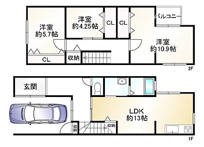 | 間取り | 3LDK | 構造及び階数 | 木造 2階建て(連棟式) |