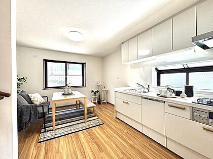 リノベーションされたLDK。3面採光で日中明るく過ごせます。