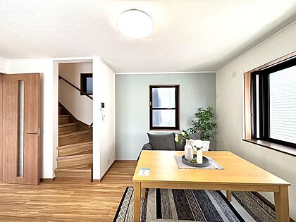 一部アクセントクロス採用で、爽やかな印象のリビング。