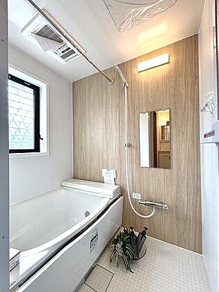 新規交換済みのシステムバス。梅雨時に便利な浴室乾燥機付き。