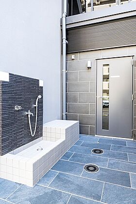 お散歩帰りの足洗にも嬉しいペット用施設完備。大切なペットと暮らせるマンションです。