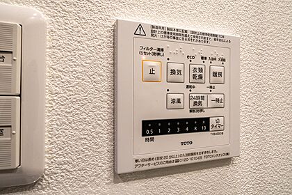 浴室乾燥機付きのバスルーム。寒い冬には入浴前に浴室暖められる暖房機能付き。