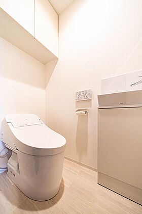 省スペースでデザイン性の高いタンクレストイレです。手洗い器付きで清潔感を保てます。
