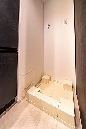 洗面所には、洗濯機置き場完備。汚れた衣類をすぐに洗濯機に投入できるので、便利です。