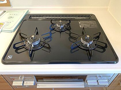 ☆コンロ☆お料理が捗る3口コンロ♪汚れてもさっと一拭き♪お手入れのしやすさも魅力です♪