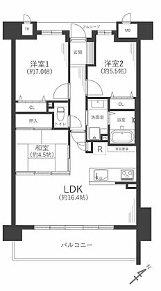 | 間取り | 3LDK | 専有面積 | 72.16m2(壁芯) |