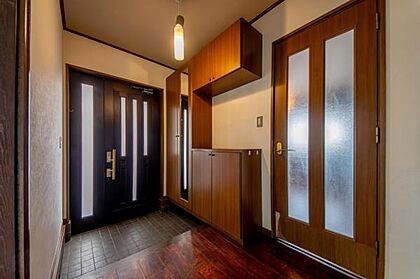 •  玄関には家族の靴などがたっぷり入る大きな全身鏡付き収納があります。