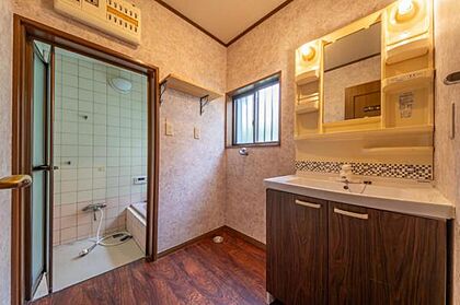 •  ゆとりある洗面脱衣室。明り取りの窓はお風呂上がりの換気にも役立ちます。