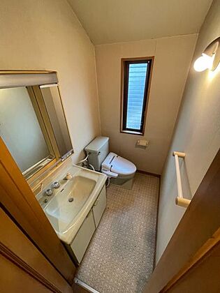 2階にもセカンドトイレと洗面化粧台。同じ空間で使いやすいですね。