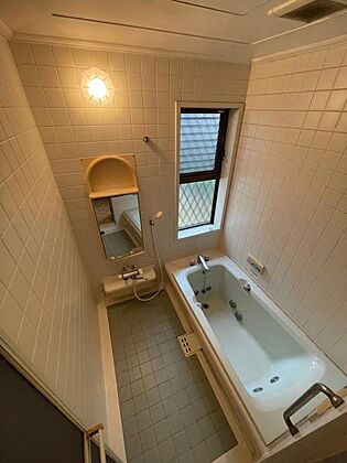 寛ぎやすい形状のバスタブ。手摺付で安心。
