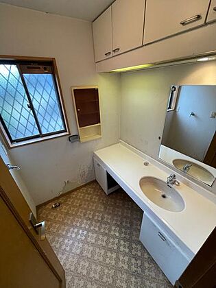1.8m以上の幅広洗面化粧台。座って身支度、並んで身支度が可能な広さある空間。