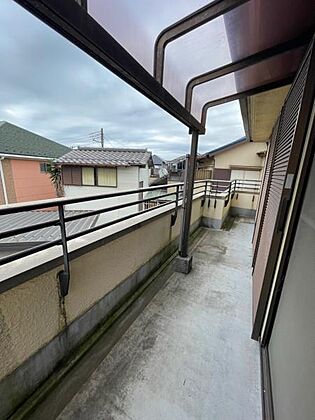 2部屋から出入り可能な幅広バルコニー。屋根付きで急な雨にも安心。