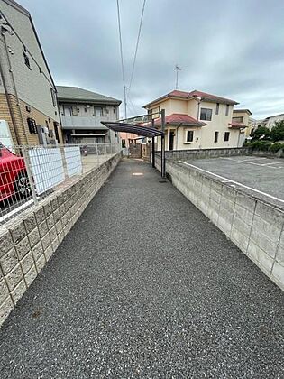 敷地延長分含めカースペース2台が可能。屋根付きカーポート付き。
