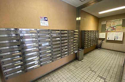 中へ入ると、広さのあるロビーがあり、突き当りに郵便受けスペースがあります。
