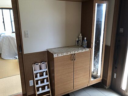 玄関には大きな鏡があり、身だしなみチェックに便利です。