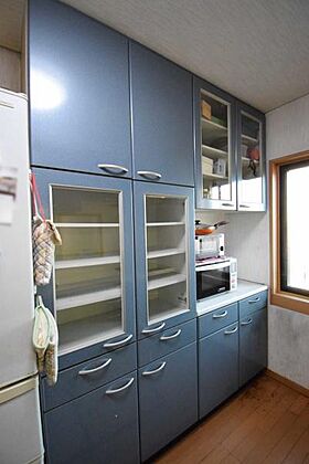 たくさんのキッチン用品をスッキリ収納できるカップボード付きです。