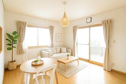 2面採光で明るいリビング。ご家族みんながゆったりくつろげる癒しのリビングです。