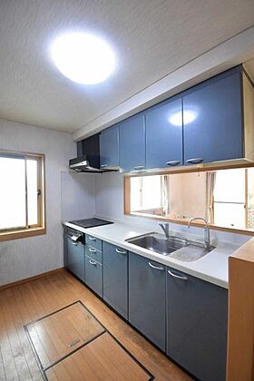 対面式キッチンでリビングにいる家族と会話を楽しみながらお料理ができます。
