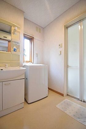 明るい洗面スペースです。日用品のストックなどもスッキリ収納可能です☆