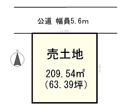 | 土地面積/坪(坪単価) | 209.54m2(登記簿)/63.5坪(11.00万円) | 代表的な接道 | 一方 公道 北 5.6m ※詳細は備考欄をご確認ください |