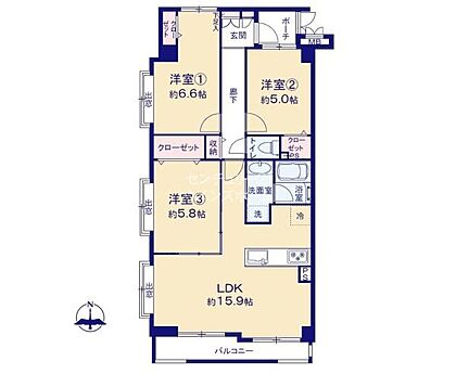 LDKは15.9帖という戸建てのようなゆとりある居住空間を確保!料理をしながら家族の顔が見える対面キッチンとダイニング、そしてぬくもりを感じる明るいリビングが続く、家族のやさしい絆が深まる間取りです。