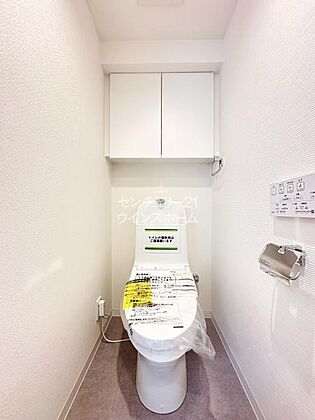 トイレも新規交換済みなので気持ち良くお使いいただけます!温水洗浄機能搭載なのでボタン一つで心地良い温水での素早い洗浄が可能です。予備のトイレットペーパーや掃除用洗剤を置いておける収納も設けました!