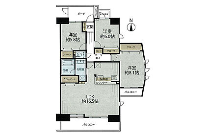 | 間取り | 3LDK | 専有面積 | 90.76m2(壁芯) |