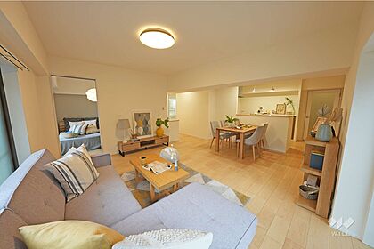 広々とした約20.8帖のLDK!ご家族との時間をゆったりとしたスペースで過ごしていただけます。南側と東側の洋室にはLDKからアクセスするプランで、ご家族の動きを把握しやすいです。