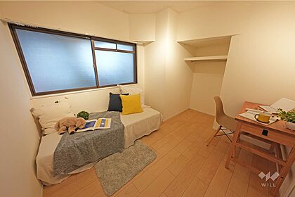 南側洋室約5.0帖ベッドをどの向きで設置しても収納を機能させられるよう、CLの扉はスライド式になっています。可動棚は見せる収納になっているので、写真やお花を飾るのもよいですね。