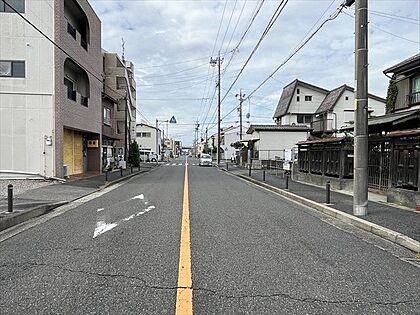片側一車線の道路に歩道もありますので、お子様の通学も安心ですね。この先の道路は、「呼続公園」に突き当ります。(2024年10月24日撮影)