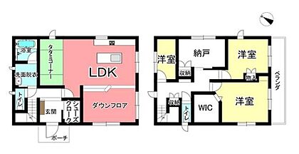 ・3SLDK ・LDK隣接タタミコーナー ・ダウンフロア ・シューズクローク ・納戸 ・ウォークインクローゼット ・駐車3台可能