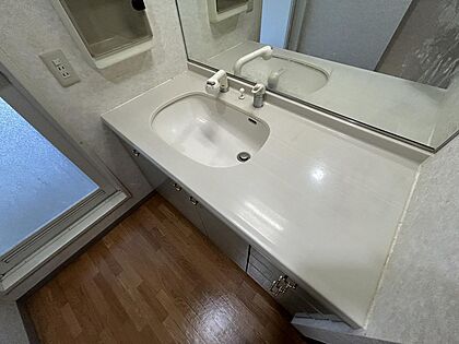 シャワー機能のついた洗面台です。大きな鏡が魅力的♪