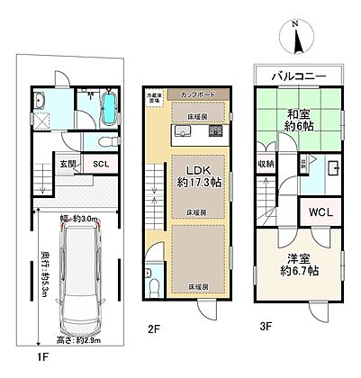 | 建物面積 | 95.58m2 | 土地面積 | 53.48m2(登記簿) |