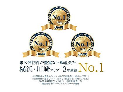 横浜・川崎エリアに5店舗を構えるリアルエージェントは、未公開物件が豊富な不動産会社 横浜エリア・川崎エリアNo.1に3年連続選ばれました!(日本マーケティングリサーチ機構調べ)