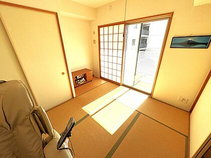 リビングの続き間としても利用できる6.3帖の和室。畳の香りに包まれながら普段は子供の遊び場やご両親様のお部屋として、急な来客の場合は襖を締め切り客間としても利用可能。