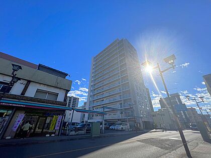 堂々たる趣ながら、主張し過ぎずどこか余裕を感じさせるシャープなフォルムで佇むマンションは、晴天の空と照らし合わせる事で、本来あるべき完成形の姿を見せてくれます。