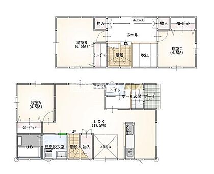 •  全室にクローゼット完備、収納が豊富で使いやすい間取りになっています