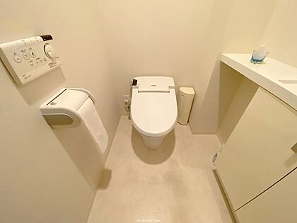 白を基調とした清潔感のあるトイレ。ゆったりとした広さがあり、お掃除もしやすく快適。タンクレス水道直結