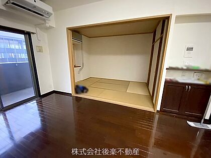 リビング横に出窓のある6帖の和室。お子様のいるご家庭や急な来客の対応時にも重宝する空間。天袋収納あり
