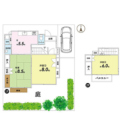 その他 公営水道 都市ガス 下水 専用バス 専用トイレ 温水洗浄便座 洗面所独立 全居室収納 フローリング バルコニー 駐車場あり 所有権 上下水道 浴室暖房 ガスコンロ設置済 ガスコンロ 和室 南面バルコニー 2階建て 木造 オンライン相談可