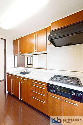 リビングを見渡せる人気の対面式キッチン。リビングには寒い冬に足元から暖まる床暖房付き。