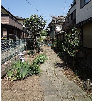 【接道】 一方 ( 公道 西 6.1m ) 旗竿地/・第一種住居地域:容積率200%、建ぺい率60%・「付属建物」種類:物置、構造:木造亜鉛メッキ鋼板葺平屋建、床面積:9.93平米(公簿) |